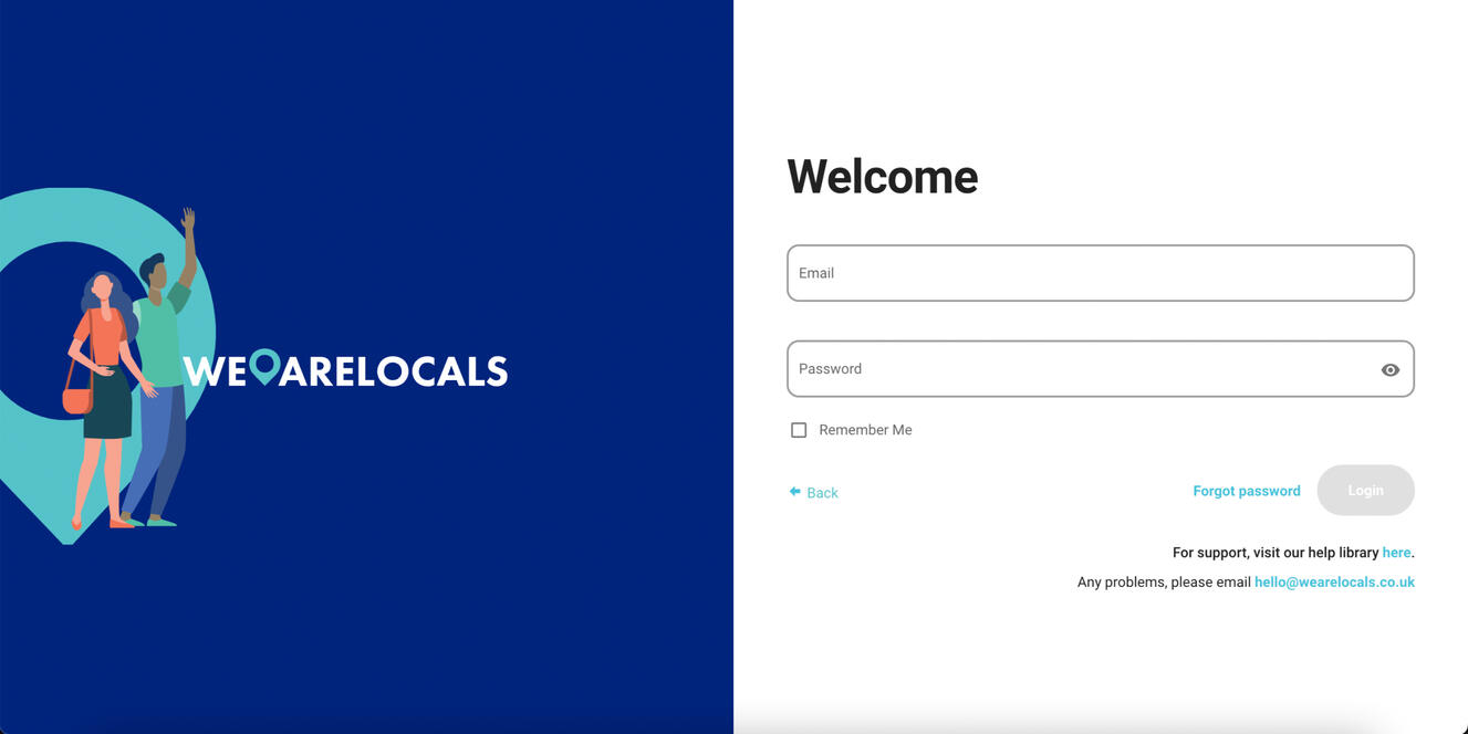 1. Login to your own dashboard by going to admin.wearelocals.co.uk with your username & password.Remember to check your junk/spam inbox for our password request email to create a new password for your account before attempting to login to your brand. If you have not received this, please let us know and we will send another email to you.
