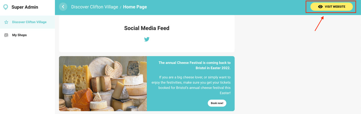 5. Preview Now you should be able to see your newly created Call To Action Homepage Element on your home section on the dashboard. Make sure to double-check how your homepage element looks on the live website by using the yellow Visit Website button in the top right of the admin dashboard.
