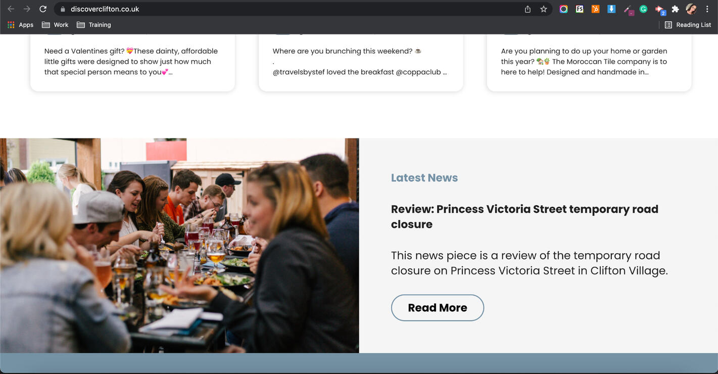 2. Preview Now you will be able to see a preview of the most recent post on your news page being featured on your homepage. Make sure to preview how this looks on your live website by clicking the Visit Website button in the top right corner.
